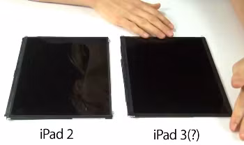 Theo website iFixit thì họ đã phân tích một mẫu màn hình được cho là của iPad 3 và khẳng định độ phân giải màn hình sẽ tăng gấp đôi so với iPad 2. Đặt dưới kính hiển vi thì độ phân giải tuyến tính của iPad 3 lên tới 2048 x1536 pixels trong khi đó chuẩn Full HD chỉ ở mức 1920x1080 pixels, sự khác biệt này cũng tương tự như sản phẩm iPhone3 và iPhone4/4s