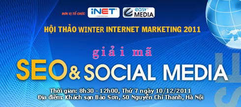 Hội thảo Winter Internet Marketing: "Giải mã SEO và SOCIAL MEDIA" diễn ra tại khách sạn Bảo Sơn, Hà Nội, dự kiến có khoảng 300 Doanh Nghiệp tham dự.