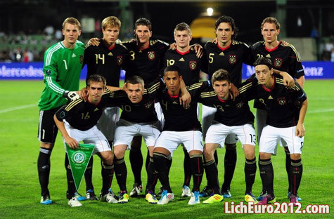 Danh sách 23 cầu thủ Đức: Manuel Neuer, Tim Wiese, Ron-Robert Zieler, Holger Badstuber, Jerome Boateng, Benedikt Howedes, Mats Hummels, Philipp Lahm, Per Mertesacker, Marcel Schmelzer, Lars Bender, Mario Goetze, Ilkay Gundogan, Sami Khedira, Toni Kroos, Mesut Oezil, Bastian Schweinsteiger, Mario Gomez, Miroslav Klose, Thomas Mueller, Lukas Podolski, Marco Reus, Andre Schurrle