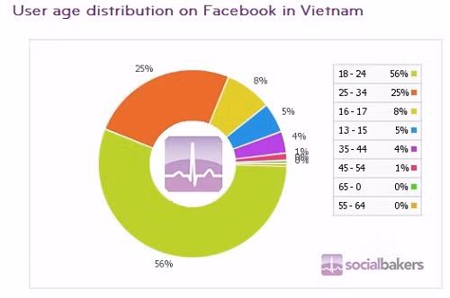 Về phân bố người dùng theo nhóm tuổi, Facebook tiếp tục chứng tỏ là mạng xã hội dành cho người trẻ với 81% tổng số thành viên nằm trong độ tuổi 18 – 34. Đối tượng trong nhóm tuổi 18 – 24 đặc biệt đông đúc trên Facebook với 1.591.260 thành viên, chiếm 56% tổng số người dùng. Đây cũng là nhóm người dùng tích cực tạo nội dung (post bài, chia sẻ link, ảnh, tương tác...) và tăng trưởng nhiều nhất Facebook trong quý cuối năm.