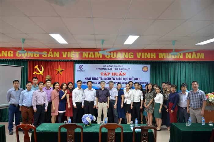 Ngày 10/05/2019, Trường Đại học Điện lực phối hợp cùng 02 đơn vị trực thuộc Hiệp hội các trường đại học và cao đẳng Việt Nam là Ban Tư vấn Phát triển Giáo dục Mở và Câu lạc bộ Kết nối Doanh nghiệp - Viện - Trường đồng tổ chức lớp tập huấn về khai thác Tài nguyên Giáo dục Mở (OER) cho 20 cán bộ là giảng viên khoa Công nghệ thông tin, cán bộ Trung tâm Học liệu, và đại diện lãnh đạo các khoa - phòng của trường.