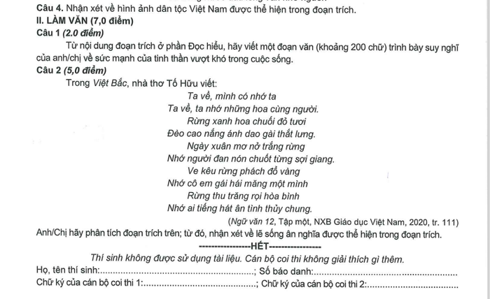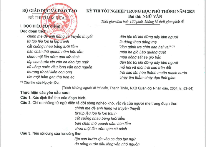 Đề thi tham khảo môn Ngữ văn: