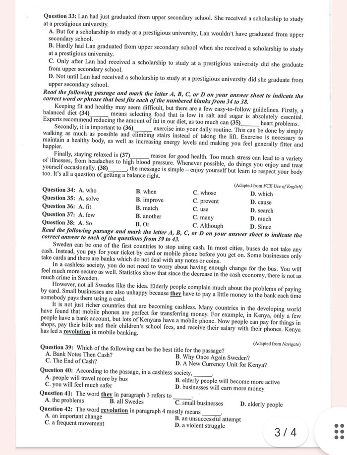 Đề thi tham khảo môn tiếng Anh: