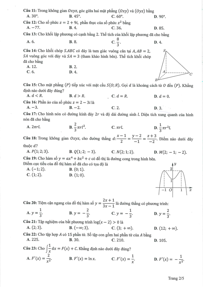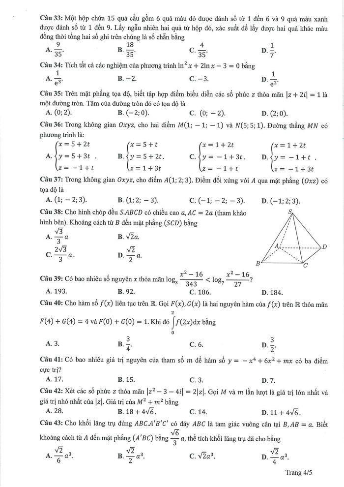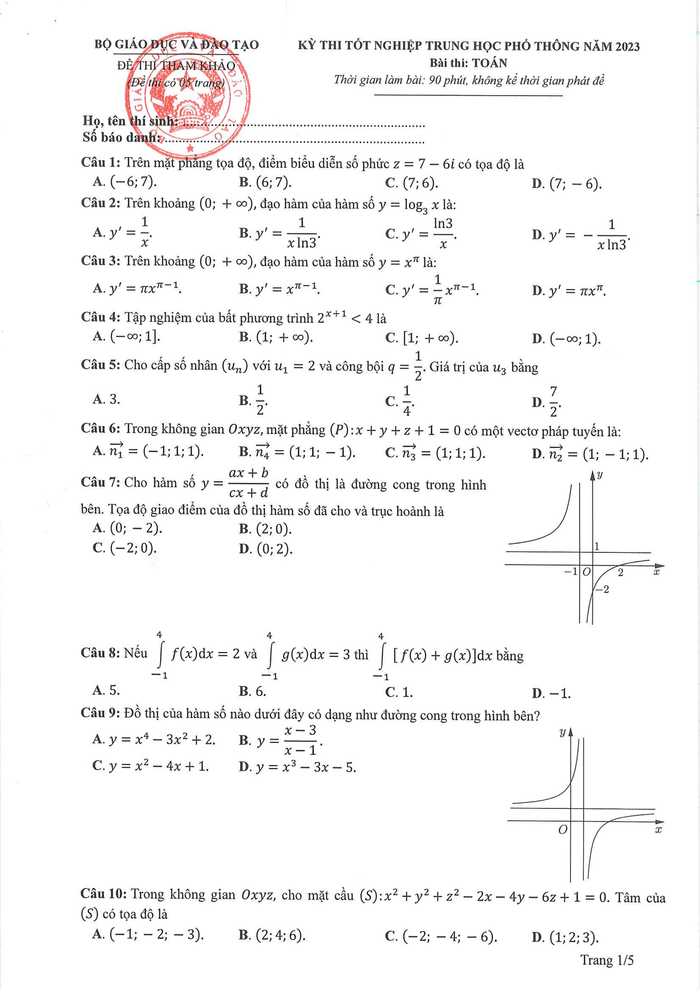 Đề thi tham khảo môn Toán: