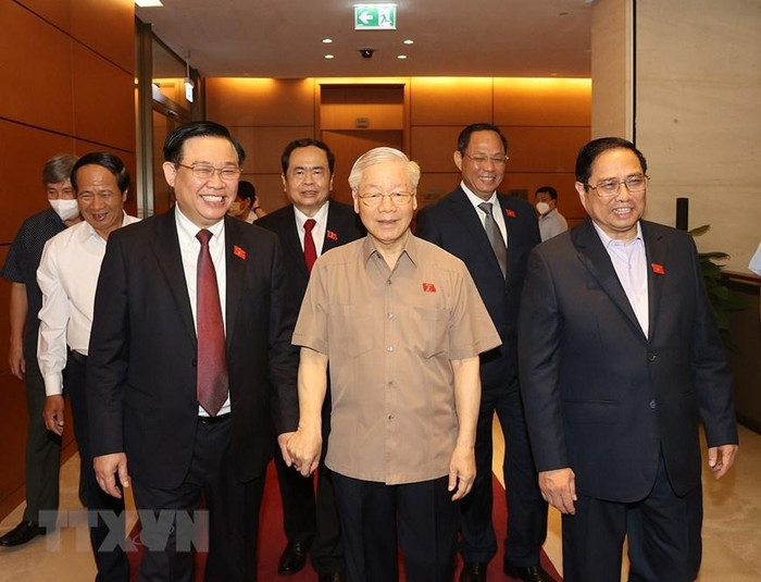 | Tổng Bí thư Nguyễn Phú Trọng, Chủ tịch nước Nguyễn Xuân Phúc, Thủ tướng Phạm Minh Chính và đại biểu dự phiên họp. |