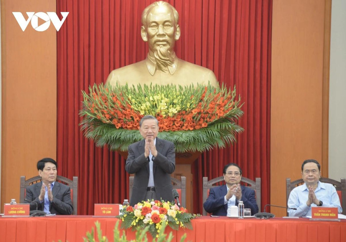 Cùng dự có Chủ tịch nước Lương Cường, Thủ tướng Phạm Minh Chính, Chủ tịch Quốc hội Trần Thanh Mẫn, Uỷ viên Bộ Chính trị, Thường trực Ban Bí thư Trần Cẩm Tú.
