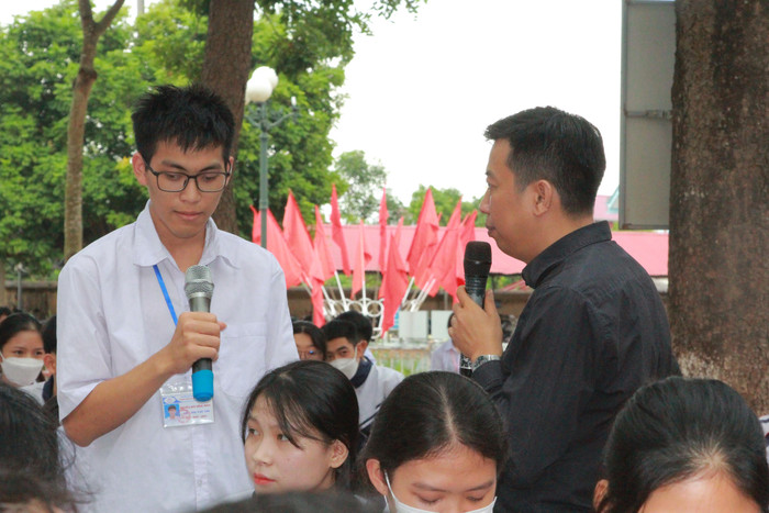 | Em Nguyễn Quý Dương, học sinh lớp 12A2 giao lưu tại Hội thảo. |