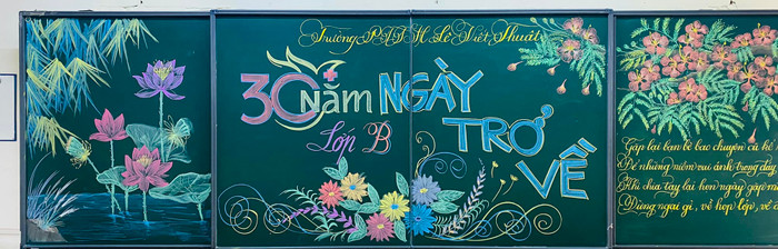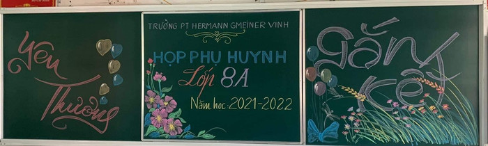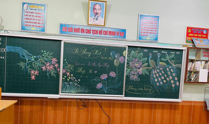 Đặc biệt, cách đây không lâu, xuất phát từ những cuộc họp lớp, họp phụ huynh từng tham dự, thầy Hạnh nảy sinh ý tưởng dùng phấn màu để trang trí chiếc bảng trong lớp với sự kết hợp giữa chữ viết và họa tiết vẽ.