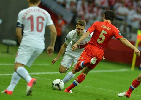 - Ba Lan khởi đầu tốt và đã có cơ hội ăn bàn trải đều mỗi khoảng 10 phút, tuy nhiên chỉ một pha bỏ kèm người với Dzagoev đủ để khiến tiền vệ này cho chủ nhà trả giá.
