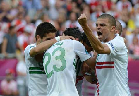 - Sự áp đảo được thể hiện bởi Bồ Đào Nha trong phần lớn thời gian của hiệp 1, với 2 bàn thắng của Pepe và Postiga từ cả bóng sống lẫn bóng chết là điểm sáng. Tuy nhiên bàn rút ngắn của Bendtner sẽ hứa hẹn một thế trận dành cho Đan Mạch sau giờ giải lao.