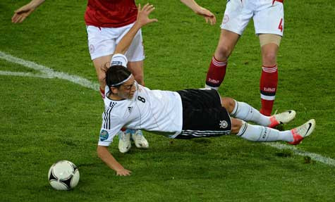 17' Ozil giúp Đức hưởng quả đá phạt sau khi xộc thẳng vào hàng thủ Đan Mạch buộc Zimling ngáng chân anh từ phía sau. Khoảng cách là 25m, nhưng Ozil đưa bóng đi quá xa và đi hết đường biên ngang.