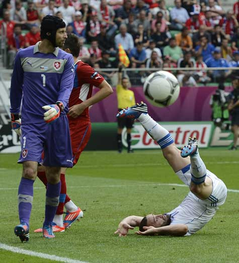 24' Karagounis treo bóng vào từ một quả đá phạt. Bóng bị phá ra trước khi tới được đầu Samaras. Jiracek phá lên để kết thúc đợt tấn công.