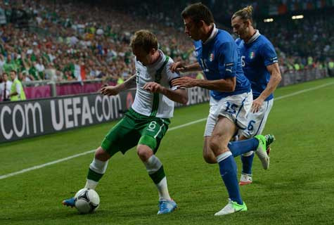 7' Kevin Doyle với một pha phản công tốt vào vòng cấm nhưng bị mất bóng sau một pha tì đè của Barzagli. Số 9 của Ireland đòi quả phạt góc nhưng trọng tài lờ đi.