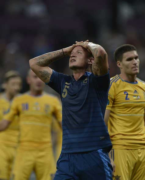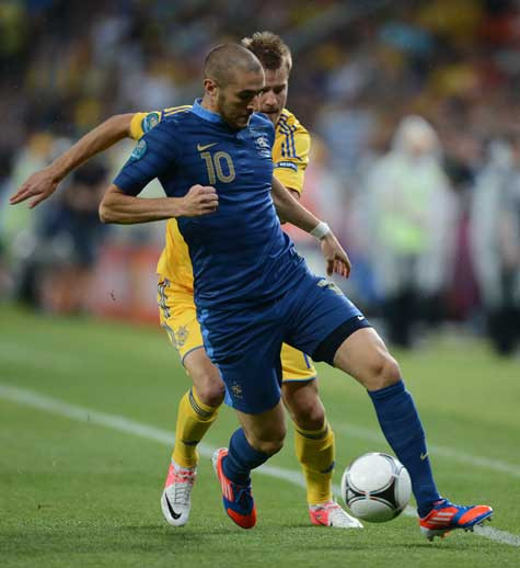 9' Menez chuyền từ cánh phải sang đối diện cho Nasri để anh này nhồi bóng vào vòng cấm cho Benzema, nhưng tiền đạo Real bị 2 hậu vệ Ukraine áp vào nhanh. Quả phạt góc sau đó bị phá tới chân của Debuchy, người có cú cứa lòng bị Pyatov cản được.