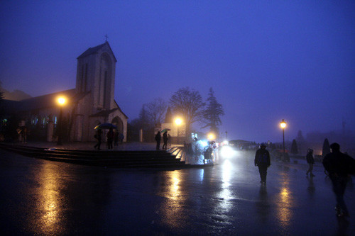 Thời gian gần đây Sapa liên tục xuất hiện sương mù dày đặc, cả thị trấn du lịch bồng bềnh trong sương.