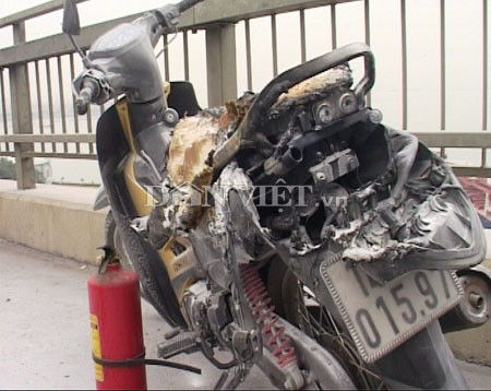 Mặc dù được lực lượng bảo vệ cầu Bãi Cháy nhanh chóng dùng bình cứu hỏa dập lửa nhưng toàn bộ yên xe và phần phía đuôi xe bị cháy trụi.