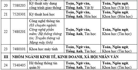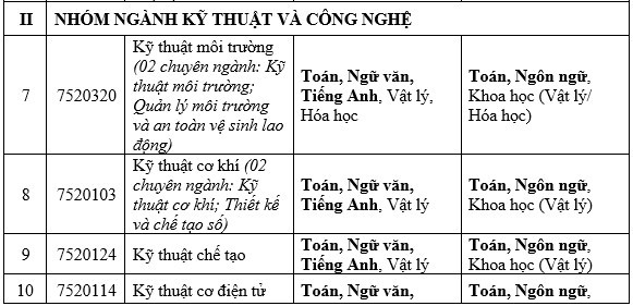 Riêng phần Khoa học, thí sinh được lựa chọn phạm vi tương ứng với môn học đã học ở trung học phổ thông và phù hợp với ngành, chuyên ngành đào tạo theo quy định của trường.