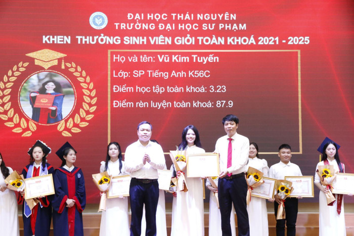 Tại buổi lễ, 16 sinh viên đạt danh hiệu “Sinh viên giỏi” toàn khóa được tuyên dương, khen thưởng. Nghi thức trao bằng được tổ chức trang trọng; lãnh đạo nhà trường và đại diện các khoa trực tiếp trao bằng và hoa chúc mừng cho từng tân thạc sĩ, tân cử nhân.