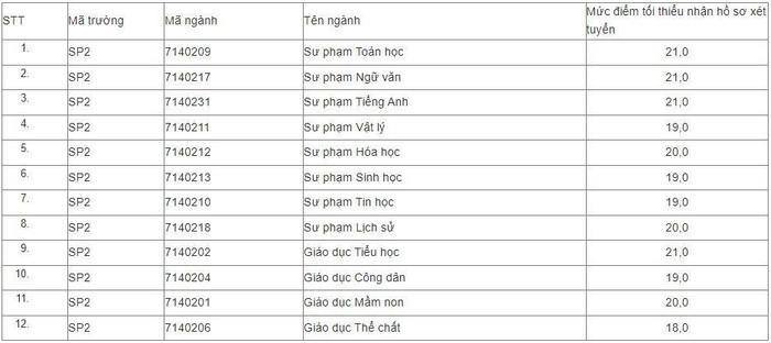 Theo đó, căn cứ Quyết định số 2103/QĐ-BGDĐT ngày 29/7/2022 của Bộ Giáo dục và Đào tạo về việc xác định ngưỡng đảm bảo chất lượng đầu vào đối với nhóm ngành đào tạo giáo viên trình độ đại học và ngành Giáo dục Mầm non trình độ cao đẳng năm 2022; căn cứ kết quả lấy ý kiến các thành viên và thường trực Hội đồng Tuyển sinh đại học chính quy 2022; Hội đồng Tuyển sinh đại học chính quy 2022 Trường Đại học Sư phạm Hà Nội 2 thông báo mức điểm nhận hồ sơ xét tuyển đại học chính quy (thang điểm 30, chưa nhân hệ số cho tất cả các tổ hợp môn xét tuyển) đối với thí sinh khu vực 3 sử dụng kết quả thi tốt nghiệp trung học phổ thông năm 2022.