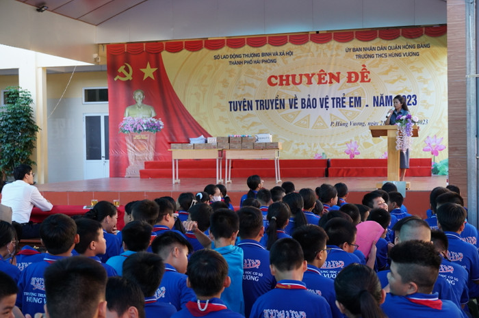 Nhằm giúp cho học sinh có thêm kiến thức về xâm hại tình dục và bạo lực học đường, chiều 21/9, Sở Lao động – Thương binh và Xã hội Hải Phòng phối hợp với Trường Trung học cơ sở Hùng Vương (quận Hồng Bàng, Hải Phòng) tổ chức chuyên đề tuyên truyền về bảo vệ trẻ em với chủ đề: “Tuyên truyền, tư vấn về xâm hại tình dục và bạo lực học đường”.