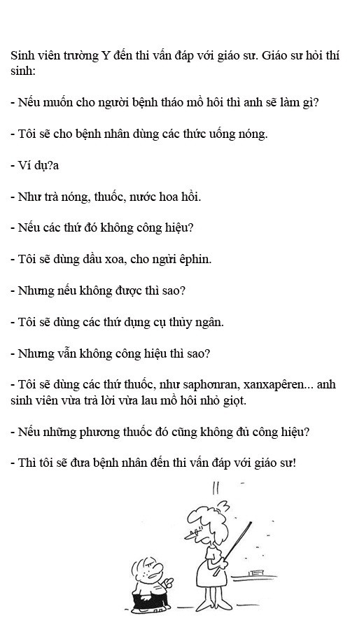 (GDVN) - Sinh viên trường Y đến thi vấn đáp với giáo sư. Giáo sư hỏi thí sinh: