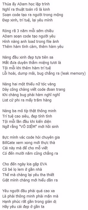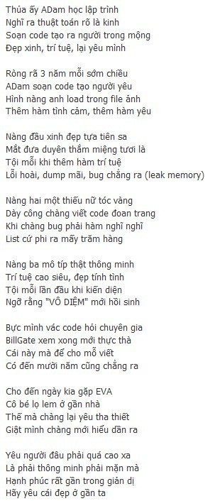 Thơ vui: Adam lập trình tình yêu