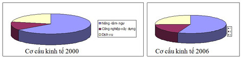 - Tỉ trọng nông nghiệp giảm, công nghiệp, dịch vụ tăng đều.