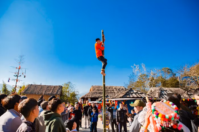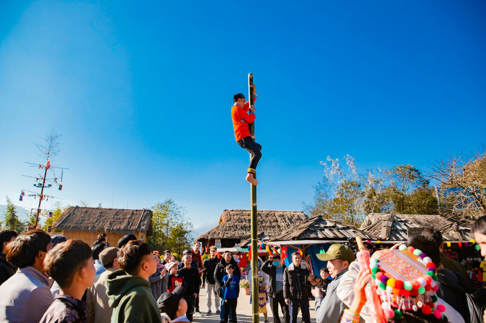 Cùng hòa mình trong không khí sôi động của hội thi múa khèn là những hoạt động truyền thống ở khu chợ quê như dựng cây Nêu ngày Tết, các trò chơi dân gian bịt mắt bắt dê, leo cột mỡ, đi cầu 1 dây, đi cà kheo, ném còn, đẩy gậy…