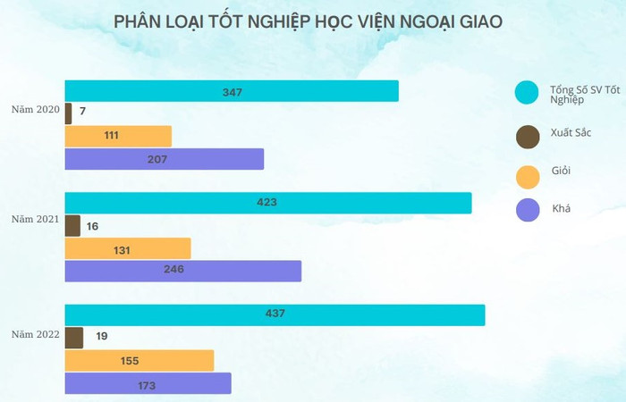 Không có số lượng sinh viên tốt nghiệp loại giỏi và xuất sắc nhiều như Trường Đại học Ngoại thương và Trường Đại học Kinh tế Quốc dân, tỷ lệ sinh viên giỏi, xuất sắc của Học viện Ngoại giao lại có phần “khiêm tốn” hơn đôi chút.