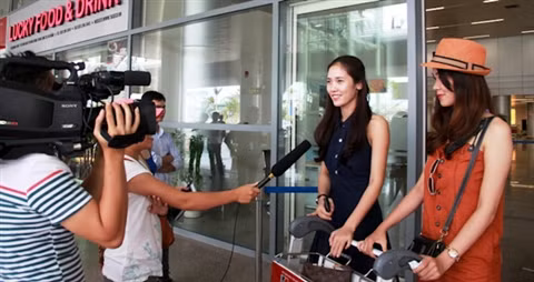 | Vừa xuống tới sân bay, các thí sinh đã nhận được sự quan tâm đặc biệt của phóng viên |
