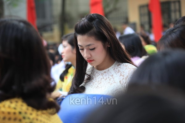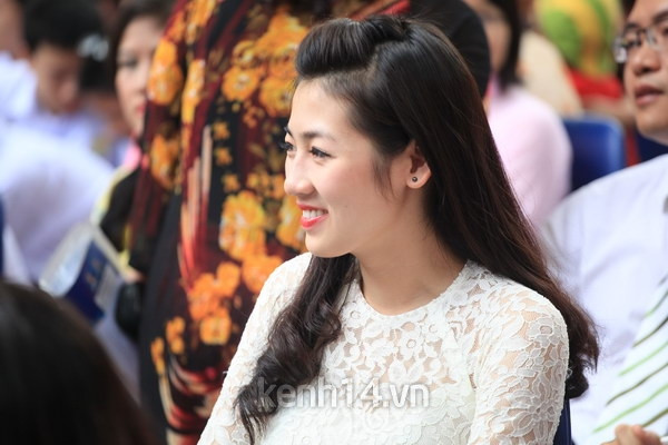 | Sự xuất hiện của Á hậu xinh đẹp trong chiếc áo dài trắng thu hút rất nhiều sự chú ý của mọi người. |