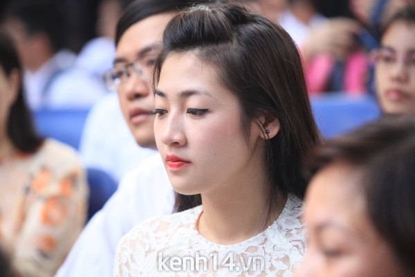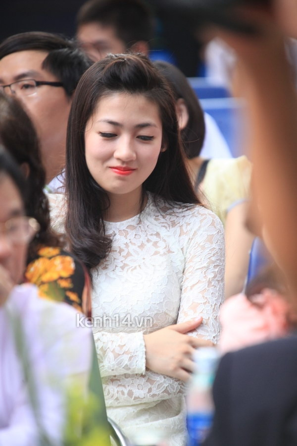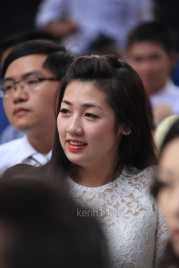 | Sáng hôm nay (5/9), Á hậu HHVN 2012 Dương Tú Anh đã có mặt tại ngôi trường cấp 3 Kim Liên (Hà Nội) mà chị ấy từng theo học, để tham dự lễ khai giảng năm học mới. |