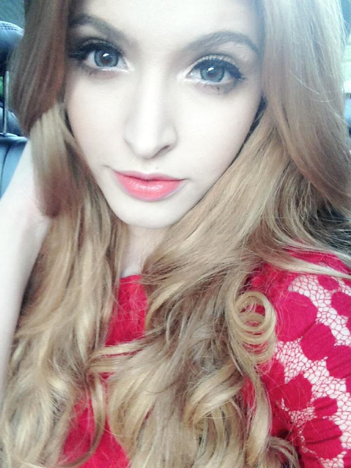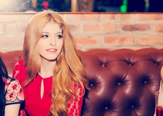 | Andrea rực rỡ trong chiếc đầm đỏ. |