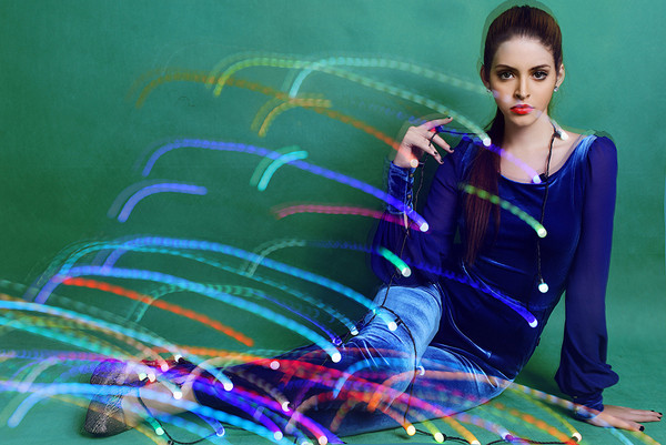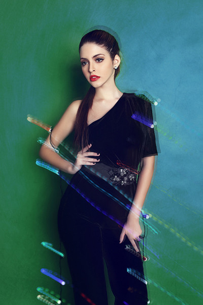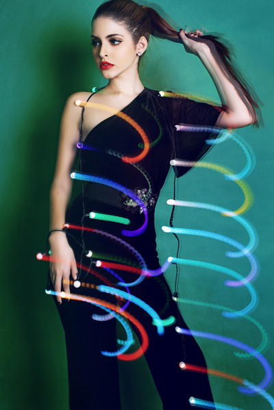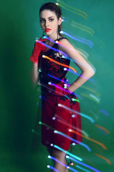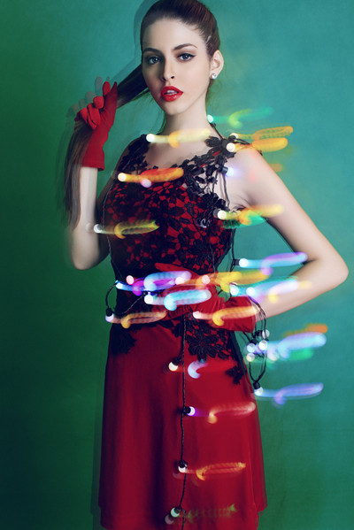 Trong loạt ảnh mùa Noel, chân dài người Tây Ban Nha biến thành quý cô kiêu sa, lạnh lùng với bóng điện quấn quanh người.