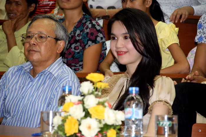 | Ngọc Trinh cười rạng rỡ và thân thiện. |