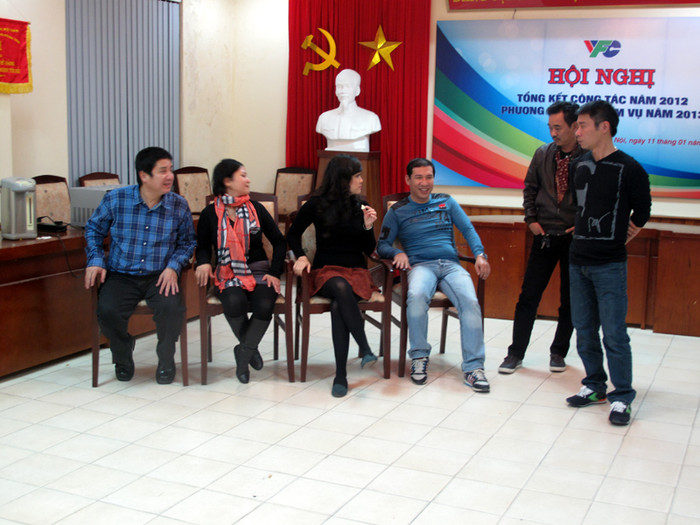 | Đạo diễn Khải Anh xuất hiện trong hậu trường Táo Quân 2013. |