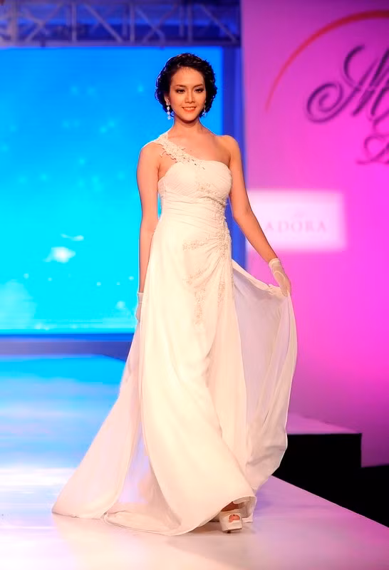 | Dù đã có gia đình, có con trai 5 tuổi nhưng khi diện áo cưới, cựu người mẫu Anh Thư vẫn rạng ngời. |