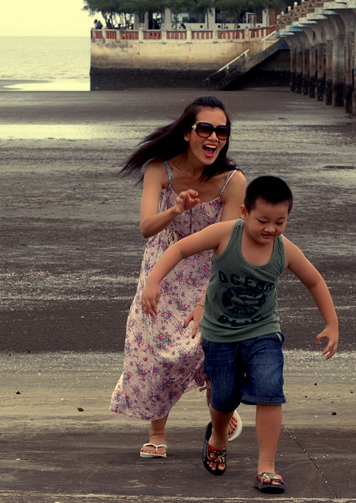 | Anh Thư đưa con trai Tiểu Long đi nghỉ mát ở khu du lịch Cần Giờ TP HCM. |