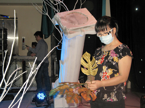 | Để có được một đêm nhạc Trịnh ý nghĩa như ý, ca sỹ Ánh Tuyết tự tay trang trí sân khấu. |