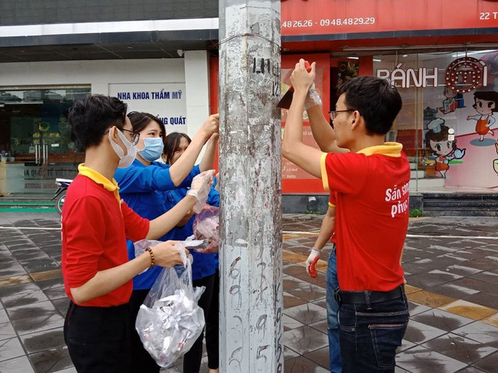 Hàng nghìn chiến sĩ áo đỏ đã hoà vào sắc xanh tình nguyện toả đi khắp các tuyến phố chung tay làm đẹp, xây dựng nếp sống văn minh đô thị.