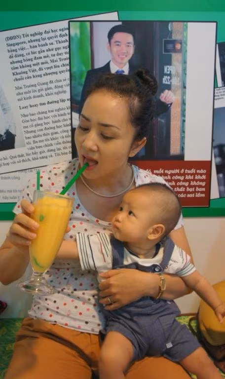 | Vợ chồng Thúy Vinh đi siêu thị mua sữa cho con. |