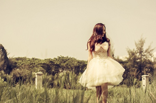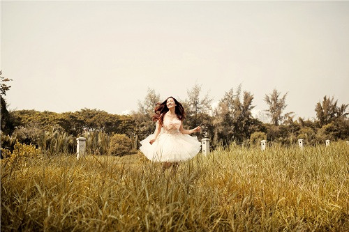 | Bảo Anh xinh đẹp như 1 nàng tiên du ca trên đồng cỏ. |