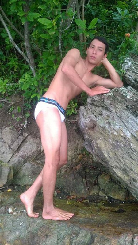 | Chàng trai cố gắng nín thở hóp bụng nhưng vẫn để lộ vòng bụng ngấn mỡ |