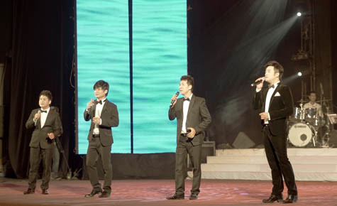 | Mỹ Tâm cùng 3 diva của âm nhạc Việt Nam - Thanh Lam, Hồng Nhung, Mỹ Linh thể hiện ca khúc "Biển hát chiều nay". |