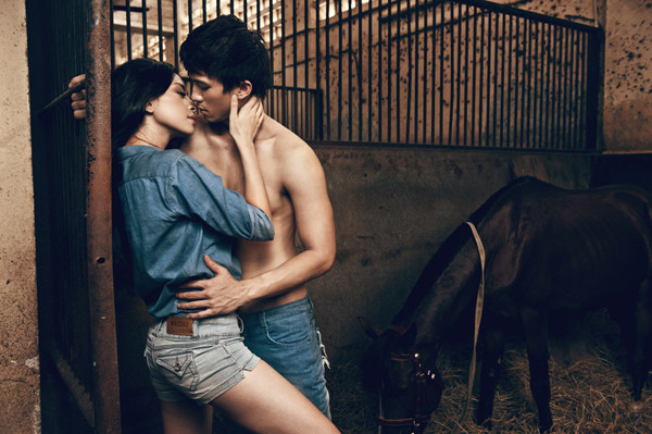 | Hà Việt Dũng và Ngô Thanh Vân chụp ảnh tại một khu trại ngựa."Đả nữ" hóa thân thành cô nài ngựa yêu kiều và gợi cảm. Điều đặc biệt, trang phục của cặp người mẫu đều do chính tay Ngô Thanh Vân lên ý tưởng thiết kế. |