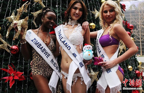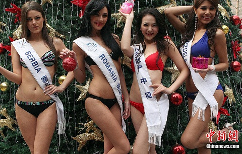 Trong khuôn khổ cuộc thi Nữ hoàng Du lịch Quốc tế 2011 đang diễn ra tại Trung Quốc, các người đẹp đã có buổi chụp ảnh rất đặc biệt chào mừng Giáng sinh trong tiết trời giá lạnh. Một số người đẹp xuất hiện trong bộ ảnh này là thí sinh chủ nhà Trung Quốc, Nam Phi, Venezuela, Serbia, Romania, Thái Lan, Mexico...Điều đặc biệt là ở Trung Quốc đang rất lạnh nên việc mặc áo tắm của các người đẹp quả là rất can đảm.