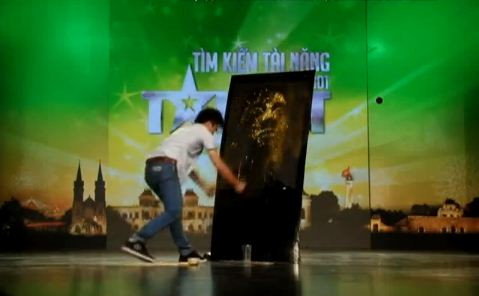 Trên background màu đen, trong phút đầu tiên, không ai hình dung được anh chàng Hồng Minh đang vẽ gì. Nhưng chỉ vài giây rắc kim tuyến lên bức tranh vừa vẽ, khán giả truyền hình cùng ban giám khảo hoàn toàn bị thuyết phục trước tài năng của anh.