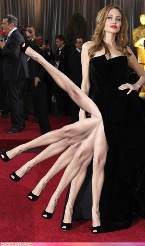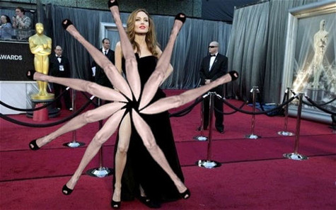 Cái chân phải nghiện trưng hàng của Angelina Jolie trên thảm đỏ Oscar lần thứ 84 đã trở thành đề tài phiếm cho báo chí và cư dân mạng châm biếm.