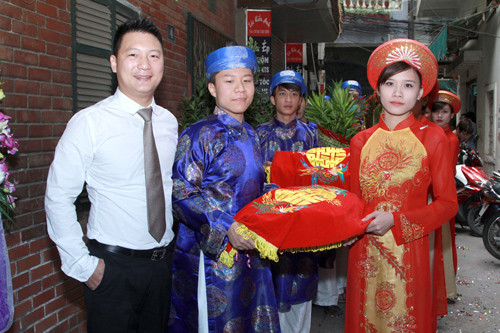 | Cô dâu chú rể nhận được khá nhiều lời chúc sớm sinh con từ gia đình hai bên. Nhiều lần Mỹ Dung không giấu diếm chút thẹn thùng khi chuẩn bị làm cô dâu. |