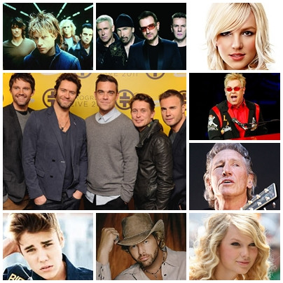 Ban nhạc người Island là U2 về thứ 4 với 78 triệu USD với kỷ lục 360 tour trình diễn trong vòng 3 năm và mang về tổng thu nhập 736 triệu USD. Trong khi nhóm nhạc huyền thoại nước Anh nổi danh từ thập niên 90 là Take That chỉ có 69 triệu USD và xếp vị trí thứ 5.